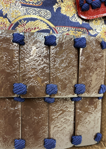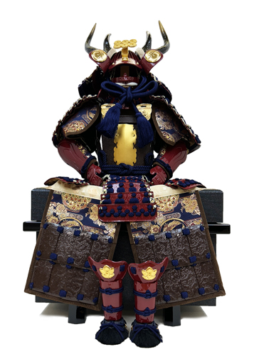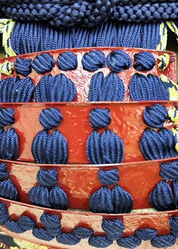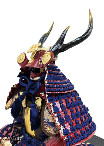 戦国時代の戦い方に 適応した鎧(当世具足)で 素掛け縅という従来と違った 紺糸縅です。 | ||||||||